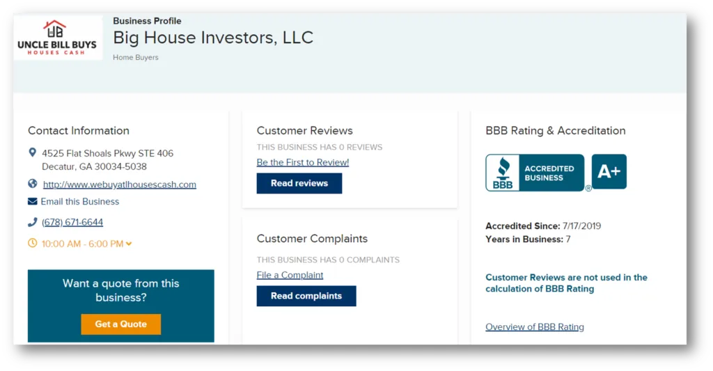 We are proud of our Better Business Bureau A+ rating, which is why we make sure that we live up to our commitment of helping homeowners like you, sell your house fast in Georgia without any hassle.