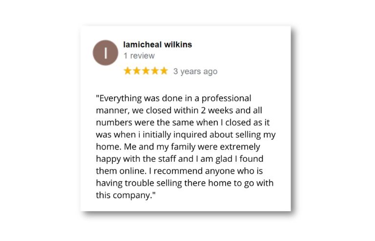 “Uncle Bill Buys Houses has been great. They are prompt, on time, and closed when they said they would.”